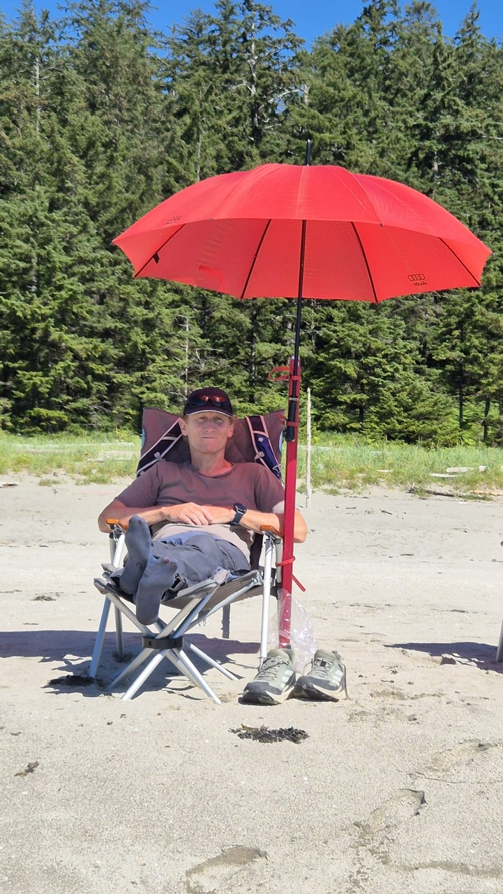 Wir sind wieder 2 Stunden Schotterpiste mit ca. 30 km/h gefahren, um an diesen wunderschönen Strand zu gelangen. Dort haben wir uns mit Wolfgang und Moni getroffen, die wir vorher in Port McNeil auf dem Supermarkt Parkplatz kennengelernt haben. 😉