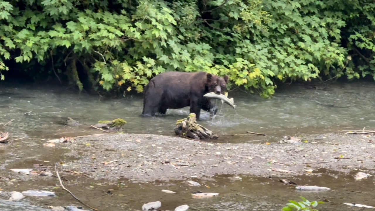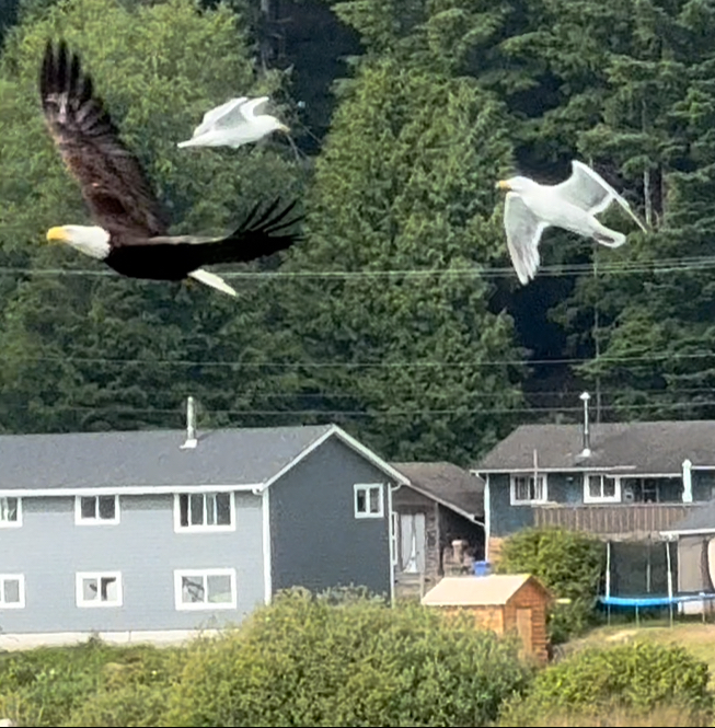 Auf dem Campingplatz haben wir dann auch unseren ersten Schwarzbären getroffen. Er ist tagsüber auf dem Campingplatz und auf der Straße rumgelaufen und wurde von Bauarbeitern verscheucht. Wir haben stundenlang im Alder Park gesessen, Weißkopfseeadler beobachtet und zwei schöne Wanderungen am Wild Pacific Trail gemacht.