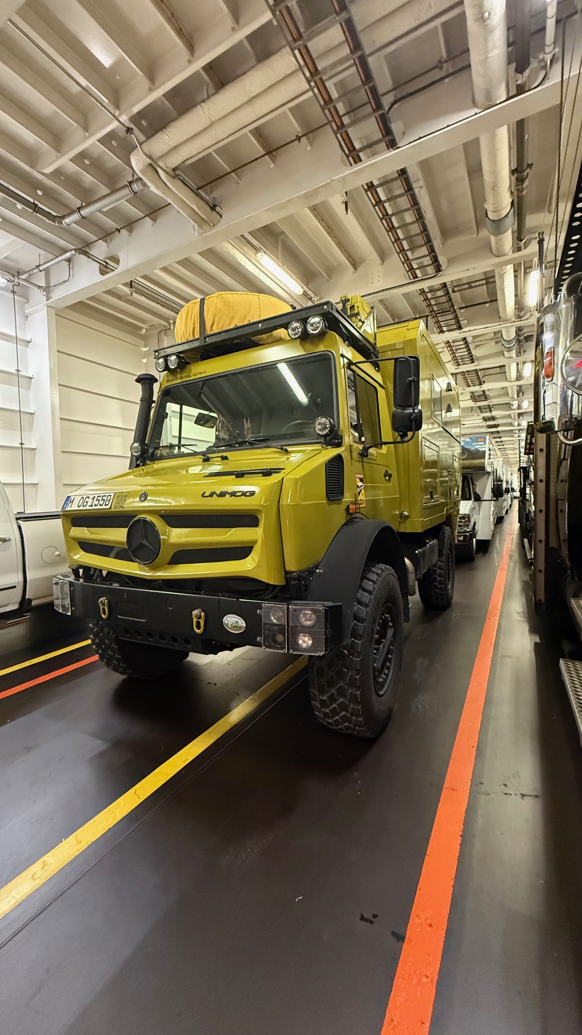 Vor dem nächsten Waschraum stand eine Mitarbeiterin in ihrem Golfwagen, die wir direkt gefragt haben, was zu tun ist. Die guckte uns nur verwundert an und wusste gar nicht was wir wollen…Dann kam aber schon ein anderer Mitarbeiter uns sagte uns, dass die Warnung aufgehoben worden ist !