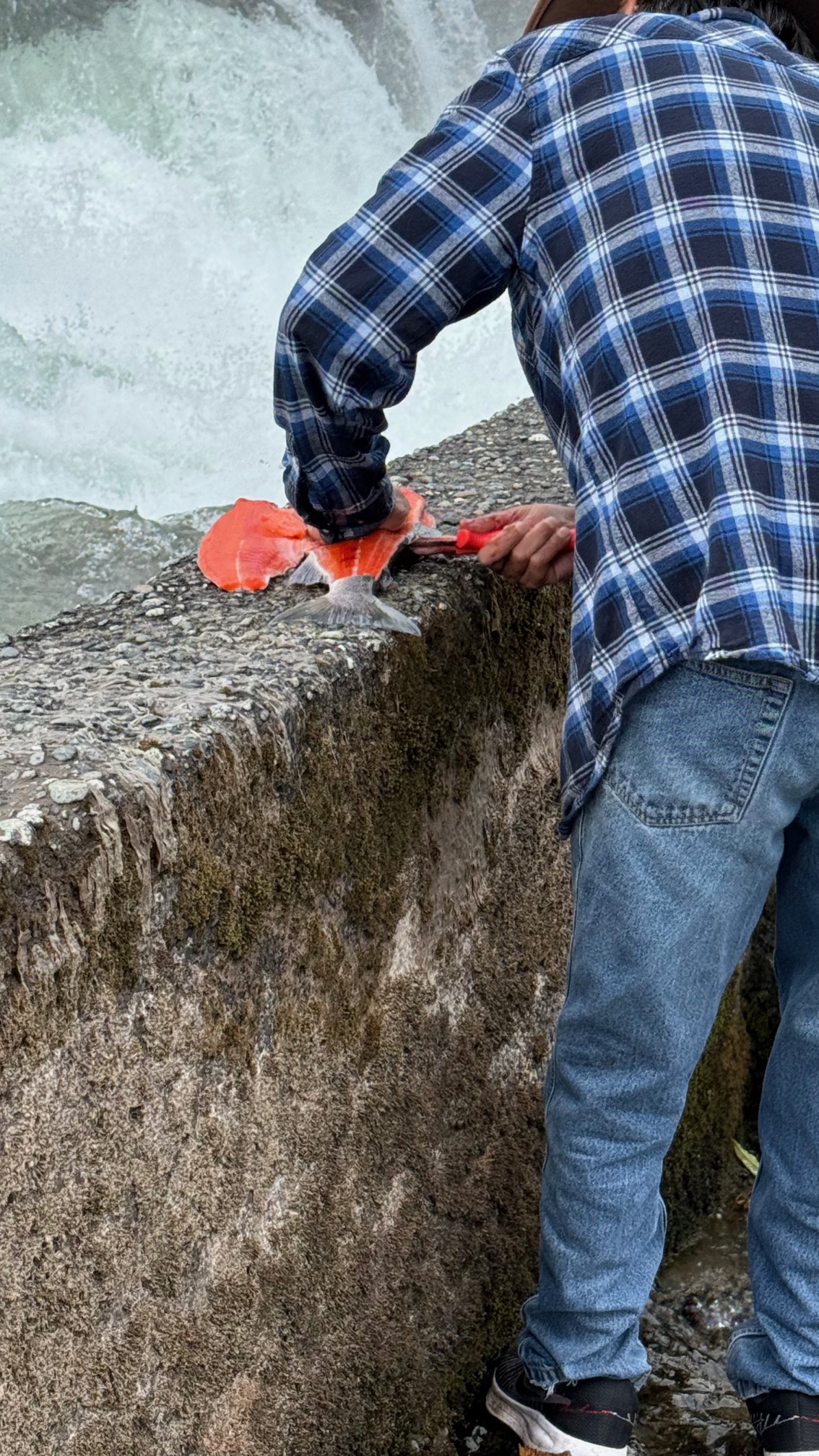 Auf dem Weg Richtung Süden kamen wir durch Wizlet. Hier ist eine Stromschnelle, an der die Lachse auch hoch wollen. Die Fischer stehen einfach mit Keschern da und fangen die Lachse. Es ist schon beeindruckend, wie viel Kraft die Lachse auf sich nehmen, um diese Stromschnellen zu überwinden. Wenn sie es überhaupt schaffen. Hier gab es frischen Lachs, den der Fischer für uns schön auf der Kaimauer filetiert hat!?! Weil uns Jasper und Banff so gut gefallen hat, sind wir dort auch nochmal vorbeigekommen. Mehr dazu beim nächsten Mal. 🙂