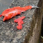 In Hyder gibt es einen über 300 Meter langen Holzsteg entlang eines Bachlaufs. Hier treffen sich alljährlich Tausende von Lachse, die hier zum Laichen hinkommen. Das Spektakel mussten wir uns natürlich angucken. 🙂 Es ist schon erstaunlich, wie viele Lachse da hoch kommen und es ist erschreckend zu sehen, wie viele vor deinen Augen einfach sterben. Die Lachse verenden nach dem Laichen, da die Wanderung und der Fortpflanzungsakt extrem kräftezehrend sind. Sie zucken manchmal bis zu 30 Minuten, dies kann man alles vom Steg beobachten…. Sie liegen dann zu hunderten einfach im Bachlauf.