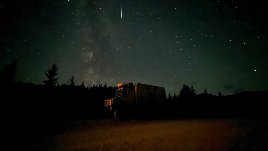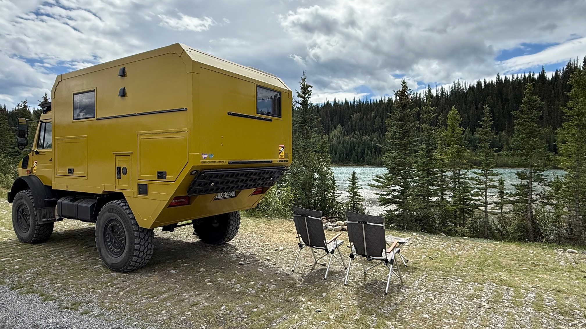Von Jasper aus sind wir dann wieder den Icefields Parkway Richtung Banff gefahren. Auf halber Strecke, am Saskatchewan River Crossing, fuhren wir links ab zum Abraham Lake. Diesen Tipp haben wir von Falk bekommen, einem anderen Overlander, der mit seiner Familie unterwegs war. Am Lake kann man überall frei campen. Wir standen hinter der Staumauer an einem kleinen Fluss mit noch vielen anderen Kanadiern, die alle hier ihr Wochenende verbracht haben. Sie hatten Motocross Maschinen, Quads und sogar Pferdeanhänger mit ihren Pferden dabei. Hier kann man überall durch die Wildnis fahren oder reiten. In Deutschland unvorstellbar; da sind wir schon ein bisschen neidisch geworden. Hier fahren sogar siebenjährige Mädchen mit den größten Quads herum. Sie passen so gerade auf die Sitzbank und beherrschen das Ding schon wie ein Weltmeister. Hier hat es uns so gut gefallen, dass wir vier Tage geblieben sind. Wir waren nur leider nicht richtig vorbereitet, hatten zu wenig zu essen und zu trinken dabei. Dieses hatten wir einem Mann erzählt, der hier in der Nähe in einem Kraftwerk arbeitet. Tags darauf kam er mit 12 Liter Trinkwasser vorbei. Gesponsert von der Regierung, sagte er lachend. Am späten Abend haben wir Feuerholz gesammelt, was auch wieder ein Kanadier gesehen hat. Er kam direkt mit seinem Quad angefahren und hat uns Feuerholz geschenkt. Die Kanadier sind alle so freundlich und hilfsbereit. Und als alle Kanadier nach dem Wochenende weggefahren sind, war der ganze Platz wieder picobello sauber 🙂 Von da aus sind wieder in Richtung Banff gefahren, wo wir eigentlich übernachten wollten, aber der Campingplatz war wie immer full. Wir sind weiter nach Canmore gefahren, wo wir frei gestanden haben. Canmore ist ein kleines Skigebiet, welches uns super gut gefallen hat. Von da aus sind wir dann zum Kananaski Nationalpark gefahren. Es ging über eine Schotterpiste. Kurze Zeit später kam uns eine Bärenmutter mit ihrem Jungen über die Straße gelaufen. Auf der höchstgelegenen asphaltierten Passstraße (Highwood Pass – 2.206 Meter) in Canada haben wir angehalten und eine schöne Wanderung gemacht. Plötzlich kam eine Braut im weißen Brautkleid vorbei und hat hier oben ein Fotoshooting gemacht. Vom Bräutigam fehlte jede Spur. Von da aus sind wir dann auf einen Campground gefahren, mitten im nirgendwo, und haben dort zwei wunderschöne Tage verbracht und sind viel gewandert. Abends saßen wir mit einem älteren kanadischen Ehepaar aus Calgary und ihren fünf Enkelkindern am Lagerfeuer. Wir haben Lieder gesungen und Marshmallows ins Feuer gehalten, was für mich eine Premiere war. Im Waterton Lakes NP haben wir eine schöne Wanderung gemacht. Hier hatte es vor acht Jahren gebrannt. Mittlerweile sieht man, wie sich die Natur erholt. Es ist schon sehr interessant das anzusehen. Im Ort selber steht ein über 100 Jahre altes Hotel mit dem Namen Prince of Wales. Das Hotel haben wir uns natürlich angeschaut und auch dort diniert. Mit unserer jungen ukrainischen Bedienung unterhielten wir uns ein wenig. Am nächsten Tag saßen wir vor unserem MOG als plötzlich eine Person von hinten ankam und Servus sagte. Da stand dann ein Wanderer mit pinker Shorts und einer goldenen Krone auf dem Kopf. Er ist den Continental Divide Trail gelaufen. Das ist ein Fernwanderweg von der mexikanischen bis zur kanadischen Grenze über knapp 5000 km immer an der Wasserscheide der Berge entlang. Er war knapp 120 Tage unterwegs. Respekt 😃 Hier endet unsere wunderschöne Reise durch Kanada. Von hier aus ging es dann über den Chief Mountain Grenzübergang in die USA.